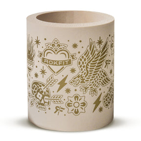 This bone-colored foam koozie features RokFit’s bold Flash pattern wrapped around and in gold color print, style meets function in full force. The old-school self-standing design gives your drink a home, and the thick foam walls lock in cold vibes longer.